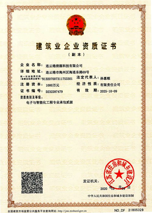 近日,連云港清源科技有限公司獲得江蘇省住建廳頒發(fā)的“電子與智能化工程專業(yè)承包貳級(jí)”資質(zhì),可承擔(dān)單項(xiàng)合同額2500萬元以下的電子工業(yè)制造設(shè)備安裝工程和電子工業(yè)環(huán)境工程、單項(xiàng)合同額1500萬元以下的電子系統(tǒng)工程和其他電子系統(tǒng)工程和建筑智能化工程施工,該資質(zhì)的取得將進(jìn)一步提升企業(yè)的市場競爭力。