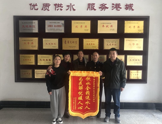 11月10日,大巷社區王主任及部分居民來到連云供水分公司經理室,他們代表大巷社區全體居民給公司送來錦旗,“飲水全賴送水人、為民解憂暖人心”。他們一行是專門感謝我公司實施的“大巷低壓區供水改造工程”順利完工并正式通水,這項工程的實施解決了困擾他們幾十年的用水難題。