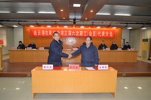 大會號召全體干部職工積極行動起來,在公司黨委和董事會的堅強領導下,以十九大、十九屆二中、三中、四中、五中全會精神和習近平新時代中國特色社會主義思想為指導,直面成績、正視困難,牢記優質供水、服務港城、情系民生的供水使命,描繪藍圖、謀求發展、昂首闊步邁上新征程,開拓創新、真抓實干、再接再厲續寫新篇章。