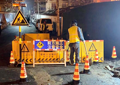 1月10日下午,有用戶反映海連路上的金寶家具城附近漏水嚴重。張兆剛和同伴滕罡趕到現場后,順著水聲一路摸索過去!耙幻鎵Φ乃畯亩䴓瞧脚_嘩嘩往下淌,跟水簾洞似的,地上冰結的特別厚。院子里的防盜門根本打不開,我們就從旁邊的屋頂徒手翻過去,排查是哪里出現了問題。”經過現場仔細勘察,兩名經驗豐富的老師傅把目標鎖定在了消防主管道上。他們不顧迎面迸濺的冰冷水花,俯身用洋鎬和鐵鍬撬開水井蓋,探身而入關閉水閥。經過了一個小時的搶修,現場的水被止住了,渾身濕透的張滕二人也被凍成了兩個“冰人”!拔覀児┧畵屝捱@個崗位,責任感一定要有,白加黑,5加2,哪里有需要我們擼起袖子就是干!”