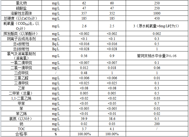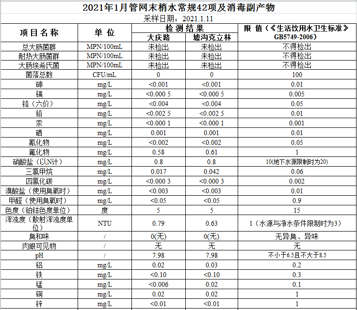 2021年1月管網(wǎng)水水質(zhì)公示