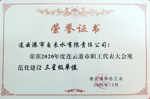 近日,從市總工會(huì)傳來(lái)喜訊,連云港市自來(lái)水有限責(zé)任公司榮獲“連云港市職工代表大會(huì)規(guī)范化建設(shè)三星級(jí)單位”榮譽(yù)稱號(hào)。