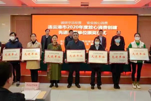 3月26日上午,由市放心消費創建辦、市市場監管局聯合召開全市放心消費創建示范先進單位表彰會,會上,公司獲得2020年度“連云港市放心消費創建先進單位”的榮譽稱號。