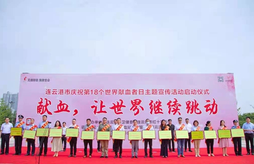 6月10日上午,連云港市慶祝第18個世界獻血者日主題宣傳活動啟動儀式在蒼梧綠園舉行,我公司被授予“全市無償獻血先進單位”榮譽稱號。