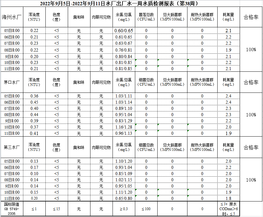 2022年9月5日—9月11日出廠水水質(zhì)公示