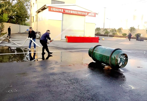 為進一步提高公司涉氯人員及應急保障人員對液氯泄漏及環境污染突發事故的應急處理和自救互救能力,切實保障員工生命和公司財產安全,11月4日下午,公司在海州水廠舉行“2022年度液氯泄漏堵漏及環境污染處置”應急演練。副總經理李家希現場指揮并點評,海州水廠、第三水廠、連云分公司共9組隊伍參加演練。