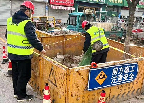 搶修單位應急值班人員24小時駐守待命,針對用戶報修,保證1小時到達現場,并快速維修快速解決用戶用水問題。11月30日15:30左右,巡線人員在日常管線巡查中發現南極路交朝陽路口管線爆管,漏水嚴重,新海管線所維修西班騰罡趕赴現場,經查看,為南極路過朝陽路DN300過路鋼管損壞,且路面積水較為嚴重。滕罡將過路DN300鋼管兩頭閥門快速、精準的關停,路面冒水被立即止住,在迅速完成停水作業后,工作人員對積水范圍內路段進行撒鹽,防止道路結冰造成安全隱患。近日,自來水公司還高效完成了海南小區爆管、香桂圓、杏壇路、健康路等報修工單,確保市民用水不受影響。