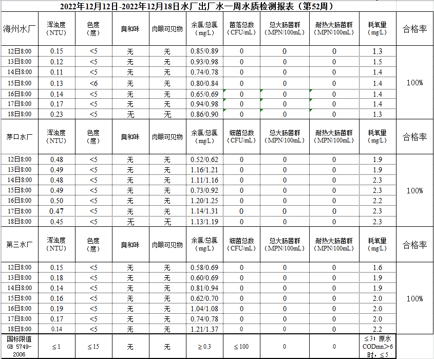 2022年12月12日—12月18日出廠水水質公示