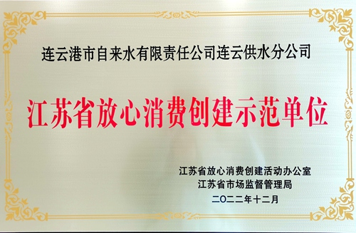 近日獲悉,連云供水分公司再獲殊榮,取得2022年度“江蘇省放心消費創建示范單位”的榮譽稱號,這是連云供水分公司繼2020年獲得江蘇省放心消費創建示范單位后再次獲得此項殊榮。