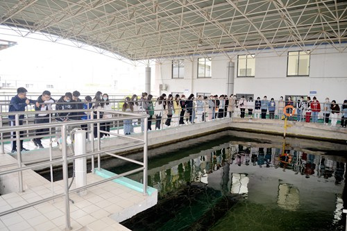 4月25日下午,連云港師范專科學校食品營養(yǎng)與健康專業(yè)師生一行50余人,來到市第三水廠,先后參觀了沉淀池、濾池、臭氧接觸池、深度處理碳池、清水池和泵房,了解混凝、過濾、消毒、深度處理等制水工藝,見證了自來水從渾濁到清澈的過程。