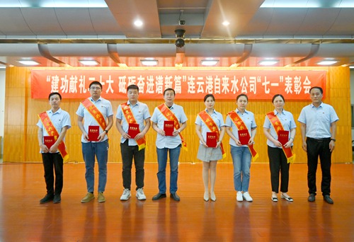 會上宣讀《關于表彰2022-2023年度優(yōu)秀共產(chǎn)黨員、優(yōu)秀黨務工作者和先進黨支部的決定》,參會領導向獲得先進的集體和個人頒發(fā)了獎牌和證書,希望大家珍惜榮譽,再接再厲,以銳意進取之心、奮勇當先之勁將黨建工作政治擔當、組織擔當轉(zhuǎn)化為公司發(fā)展新動能,為推動港城供水事業(yè)高質(zhì)量發(fā)展凝聚磅礴力量。