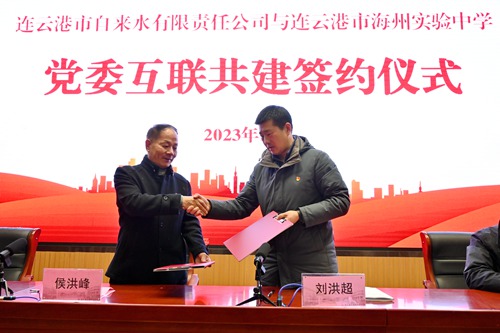 公司黨委書記侯洪峰與海州實驗中學黨委書記劉洪超簽署了為期三年黨建共建協議。他強調,本次簽約是一次意義非凡的“牽手見證”和“雙向奔赴”,希望雙方以此為契機,充分發揮水司優質服務和學校立德育人的職能優勢,通過理論共學、資源共享、活動共辦、發展共謀和品牌共樹等方式,積極探索新時代校企黨建共建的新思路、新舉措,以達到“黨建引領、凝聚共識、推動發展”的目標。