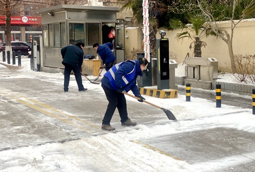 為提高掃雪除冰的效率,機械和人工合理分工,專人專車清理路面積雪,而后人工撒鹽,保證路面結冰融化。
