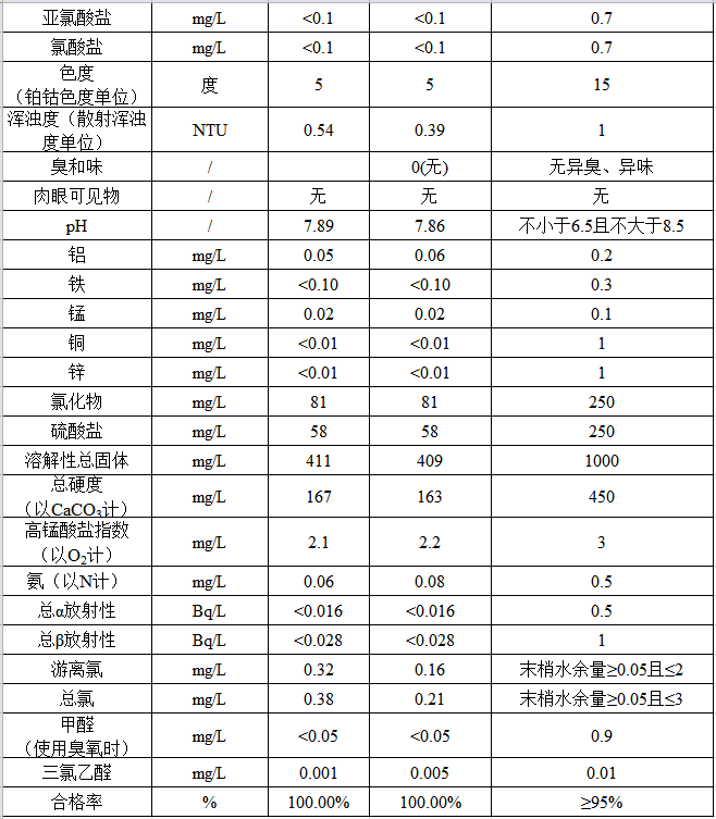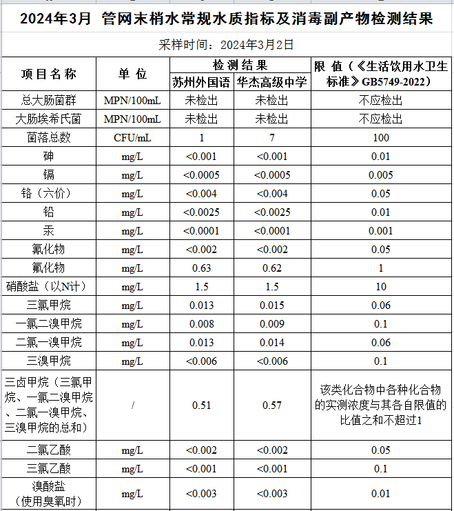 2024年3月份管網(wǎng)水水質(zhì)公示