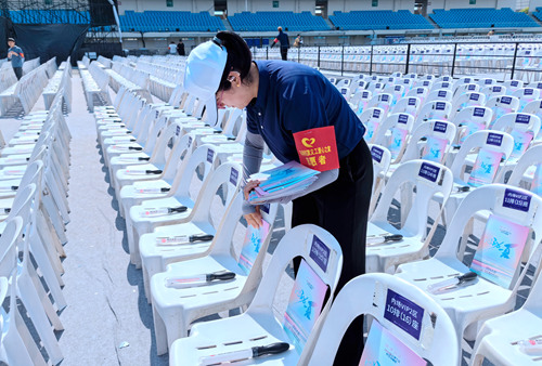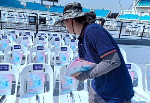 活動(dòng)現(xiàn)場(chǎng),“小白鴿”志愿者們身著統(tǒng)一蔚藍(lán)色志愿服裝,積極投身到“連云港之夏”演唱會(huì)的準(zhǔn)備工作中,炎炎夏日不畏酷暑,有的負(fù)責(zé)在4萬(wàn)多平方米、高達(dá)46米的場(chǎng)區(qū)內(nèi)搬運(yùn)和吊裝5噸多重的活動(dòng)物品,有的負(fù)責(zé)將3萬(wàn)多套熒光棒和節(jié)目單手冊(cè)擺放到對(duì)應(yīng)的場(chǎng)區(qū)和觀眾席,還有的加入到彩排工作隊(duì)伍承擔(dān)演出內(nèi)場(chǎng)保障任務(wù),體育館內(nèi)處處是他們有條不紊忙碌著的身影,汗水濕透了后背,烈日曬紅了臉頰,依然阻擋不了他們專(zhuān)注熱情的干勁兒,保質(zhì)保量地完成了志愿服務(wù)項(xiàng)目。