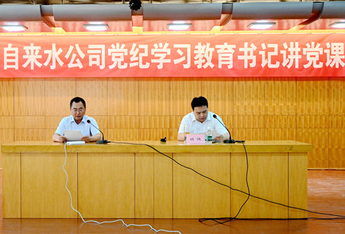 公司黨委書記殷波同志為參會黨員干部宣講《嚴守六大紀律 激勵擔當作為----為供水事業高質量發展提供堅強紀律保障》黨課。殷書記通過帶領大家回望黨的紀律建設歷程,準確把握六大紀律的主旨要義,凝聚公司黨員干部思想共識,引導全體黨員干部嚴于律己、嚴負其責、嚴管所轄,持續鞏固黨紀學習教育成果。