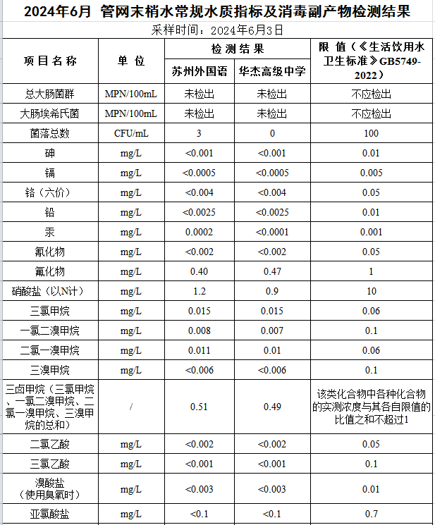 2024年6月份管網水水質公示