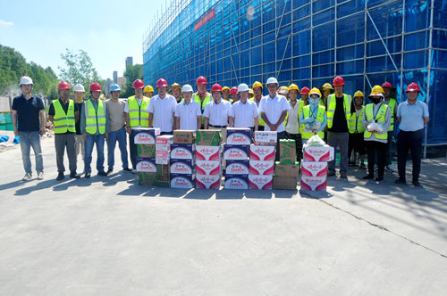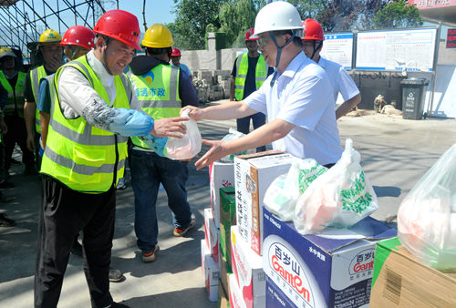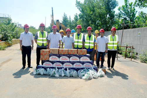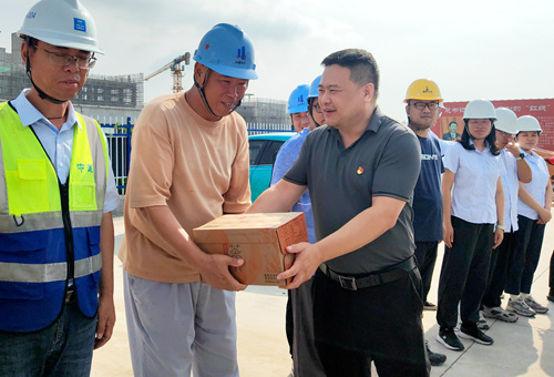 入伏以來,港城持續高溫,最高溫度達到38℃。7月下旬至8月上旬,公司領導深入生產一線和在建工地現場,慰問奮戰在高溫一線的員工,并送去防暑降溫用品和飲料,對他們不懼高溫、堅守崗位、忠誠履職的工作熱情和辛勤付出表示衷心感謝,叮囑他們加強自身安全防護,注意防暑降溫、保重身體。
