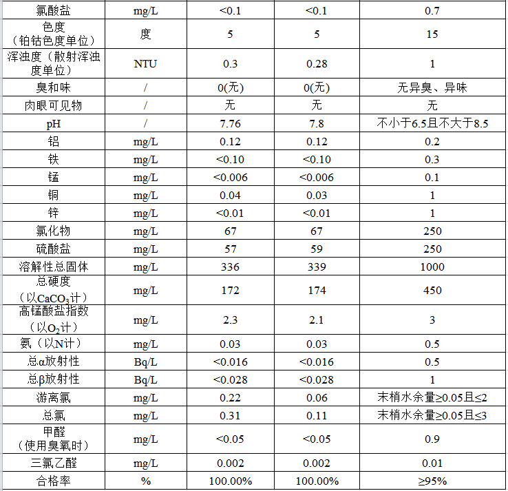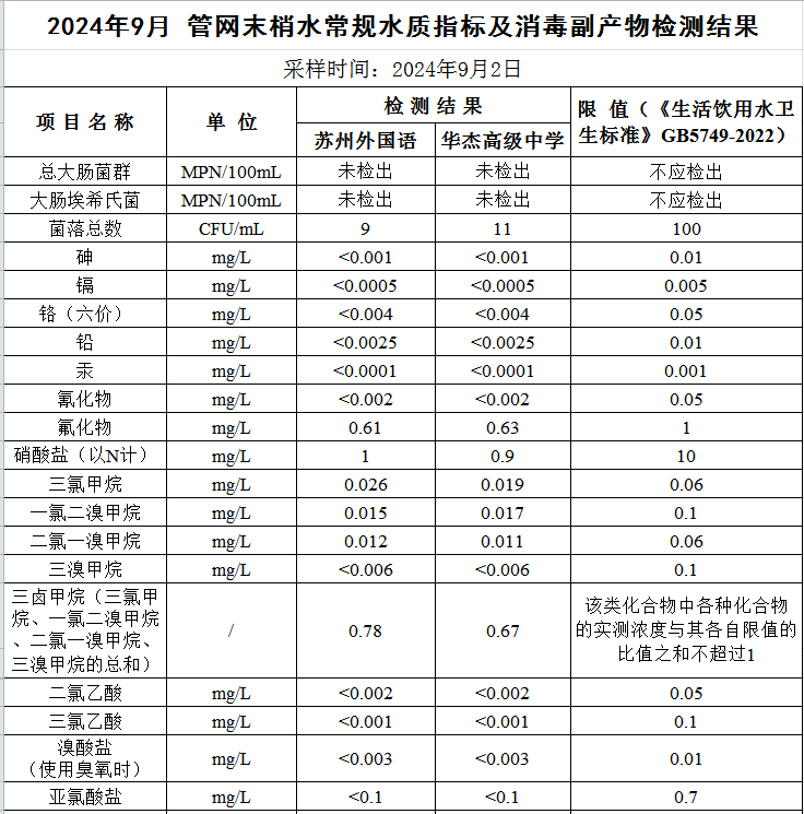 2024年9月份管網(wǎng)水水質(zhì)公示