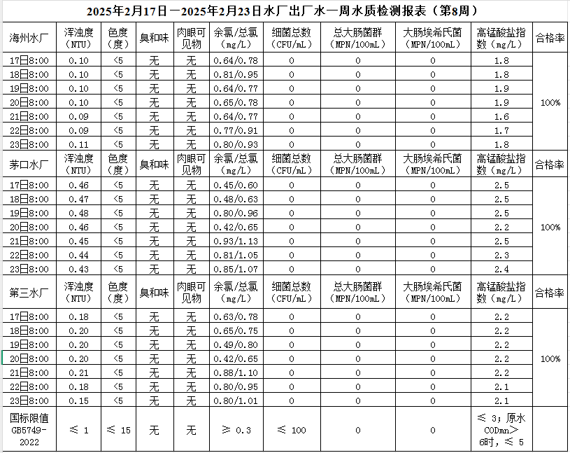 2025年2月17日——2月23日出廠水水質公示