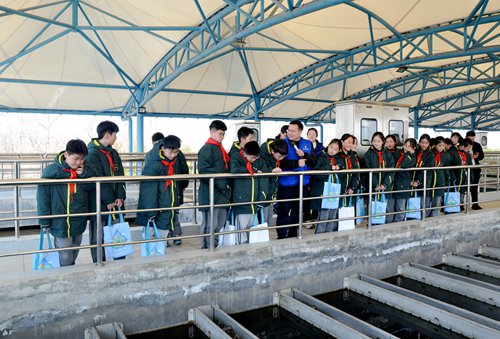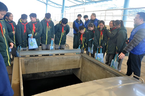 海州實驗中學師生在水廠工作人員的帶領下依次參觀了海州水廠二期高密度沉淀池、臭氧發生器間、生物活性炭濾池、中控室、V型濾池、炭砂組合濾池管廊、二級泵房,師生們詳細了解了自來水從原水到合格飲用水的復雜工藝流程。同學們親眼見證了渾濁的原水經過多道工序后變得清澈透明,紛紛感嘆“科技的力量”和自來水生產的不易。