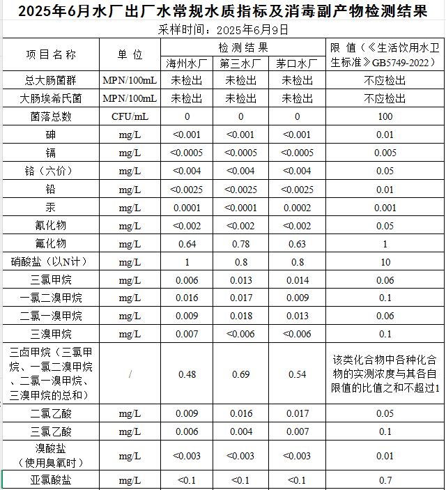 2025年6月出廠水水質(zhì)公示