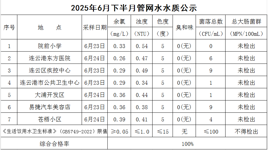 2025年6月下半月管網(wǎng)水水質(zhì)公司