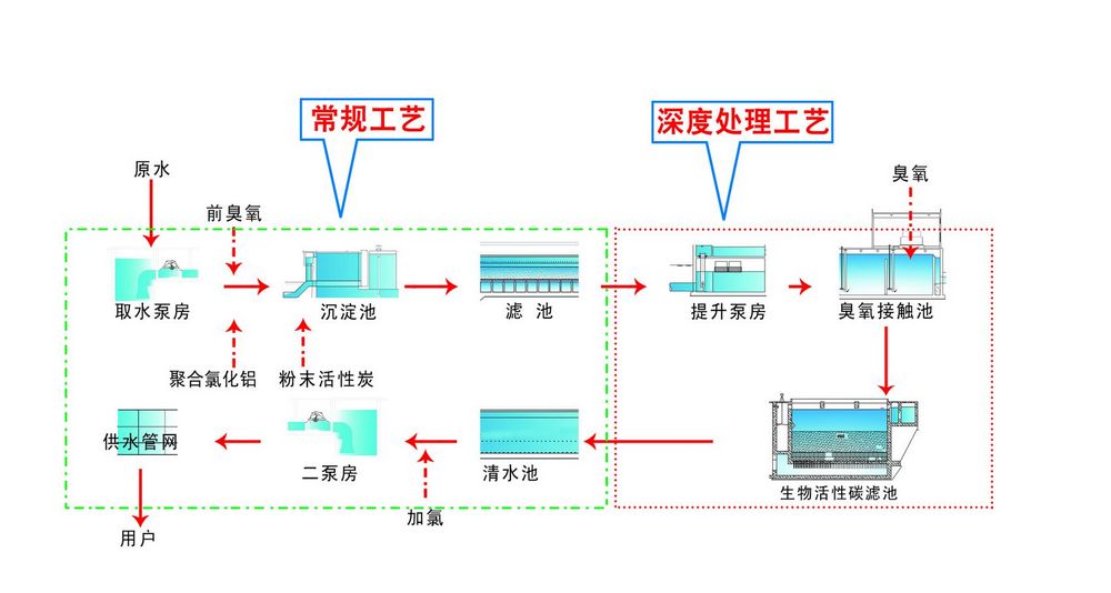 第三水廠是連云港市最先進(jìn)的水廠,在常規(guī)凈水工藝的基礎(chǔ)上,采取臭氧-活性炭處理工藝對自來水進(jìn)行深度處理,通過臭氧氧化、活性炭吸附作用,對于有機(jī)物、氨氮、色度、異味的去除以及口感的改善均取到良好的效果。